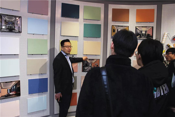 每到一處,學生們都會仔細觀看,聽解說員講述室內(nèi)有害物質(zhì),空凈治理原理、綠色裝飾材料工藝與花色等環(huán)保品牌知識,讓學生們近距離的感受環(huán)保品牌產(chǎn)品的魅力,當學生們看到用環(huán)保涂料貝殼粉裝飾的墻面時,都發(fā)出了連連的贊美聲,紛紛拿出手機進行拍照。